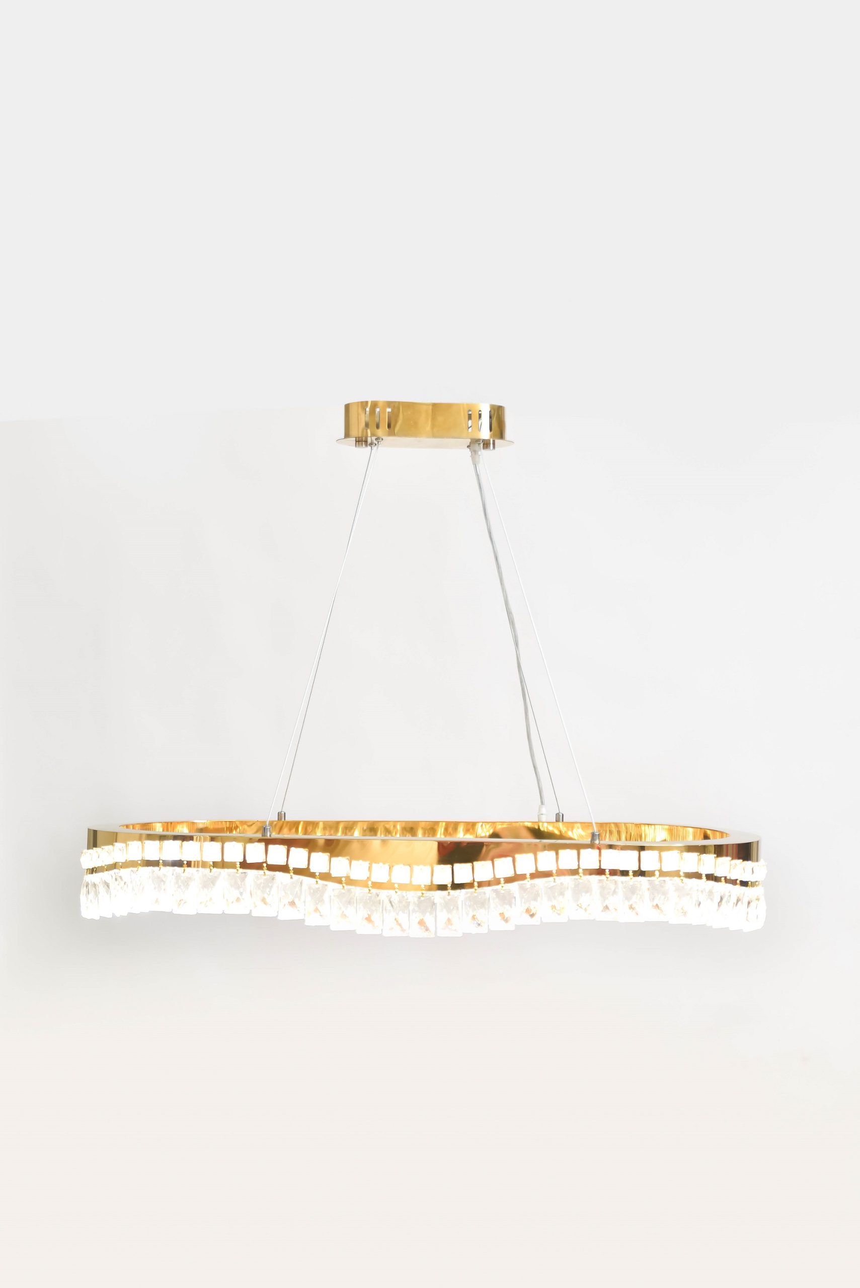 نجفة بيضاوية الشكل مزودة بإضاءة LED على شكل موجة حب مربعة، 90 × 50 سم، المنتج 5661، لون ذهبي