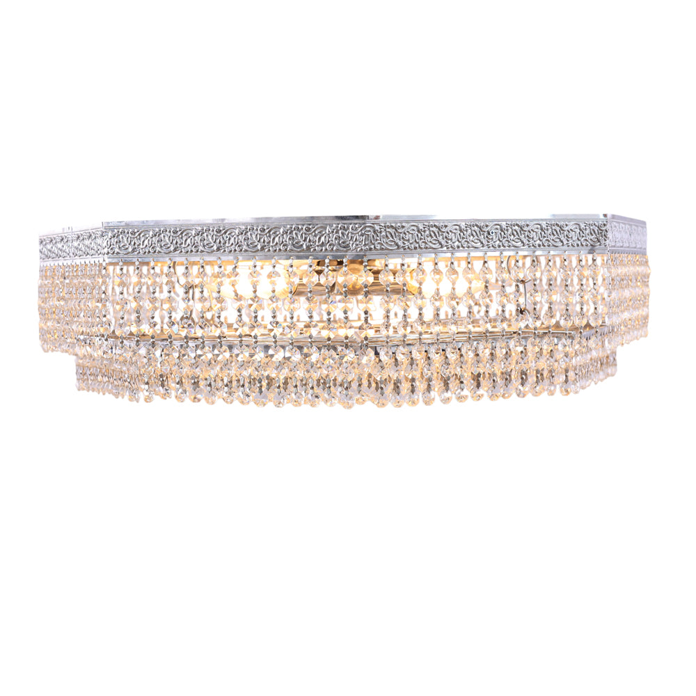Octagonal cage Flush Light, 8 Lights, Metal, 70×18cm - Sliver