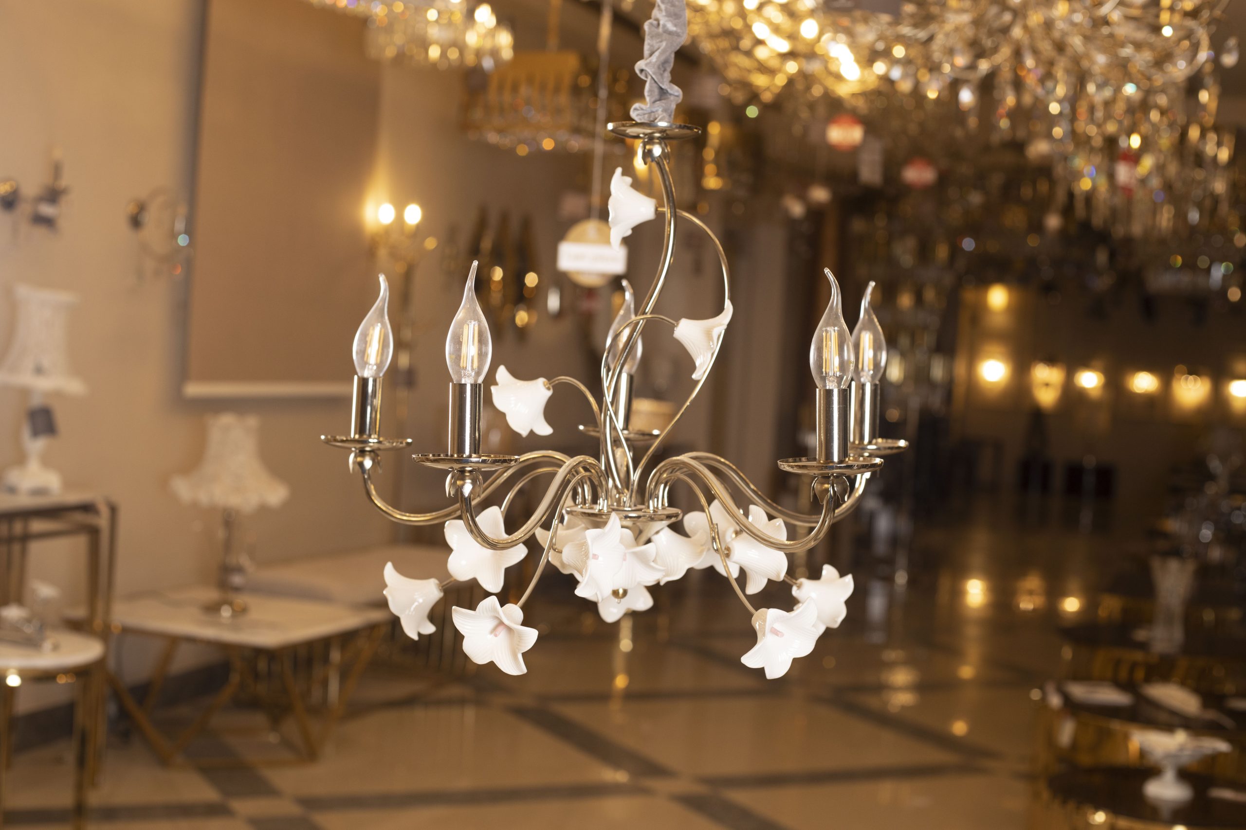 Porcelain roses 5-arm chandelier code 4047 solitaire gold