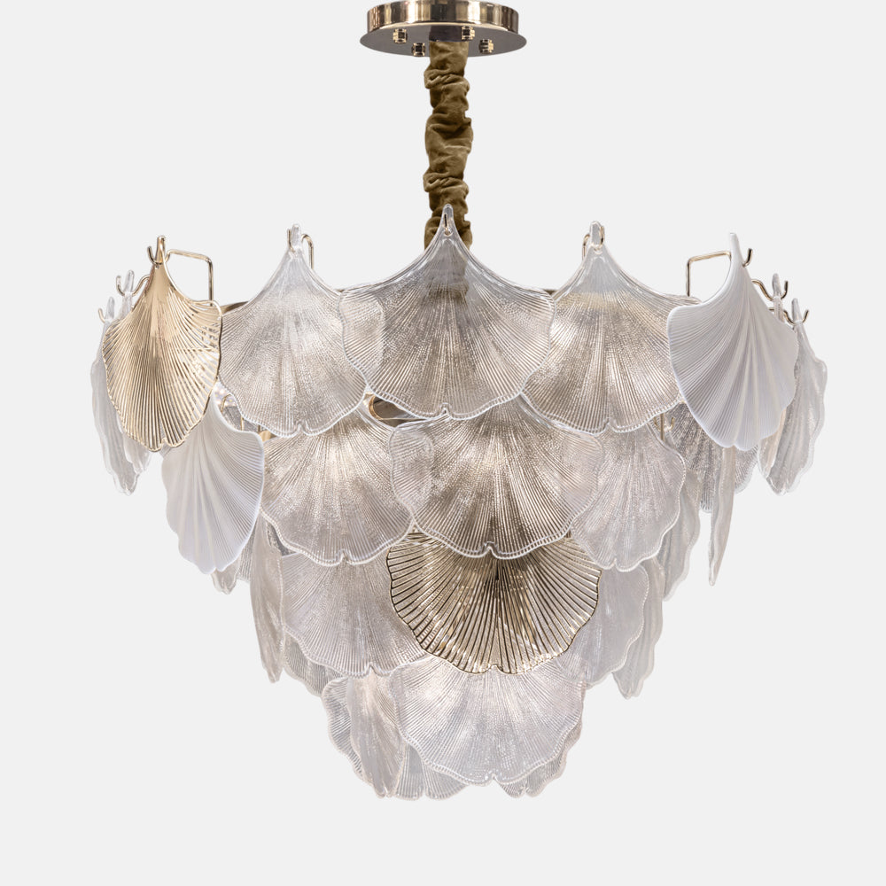 Glass Palm Leaves Round Chandelier, 14 Lights, Metal, 70×80cm - Solitaire Gold