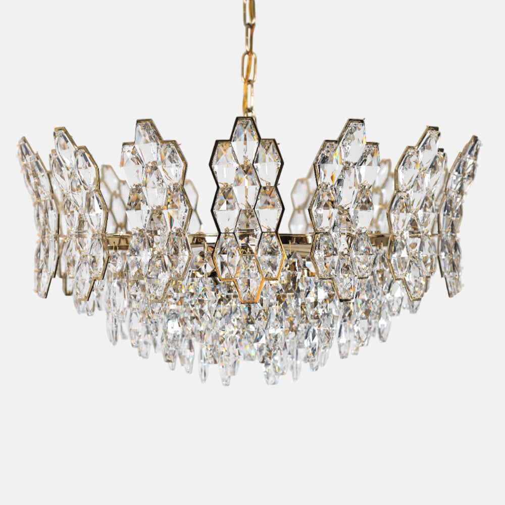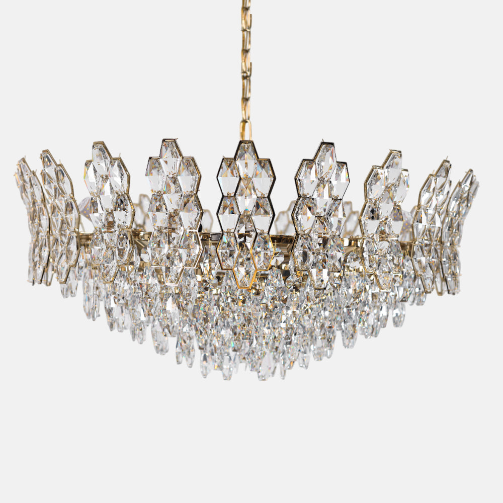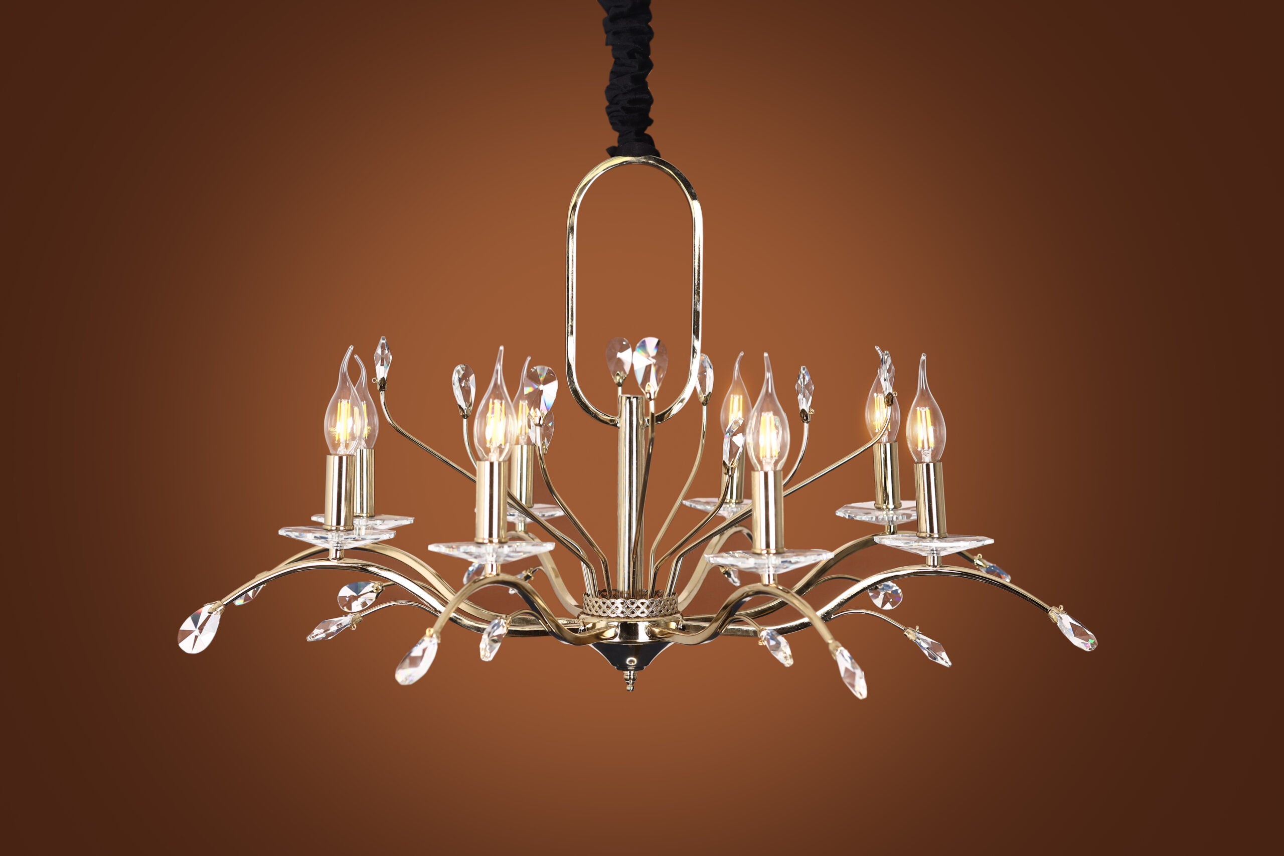 Chandelier 8 arms oval heart almond branch code 5737 with solitaire gold crystal