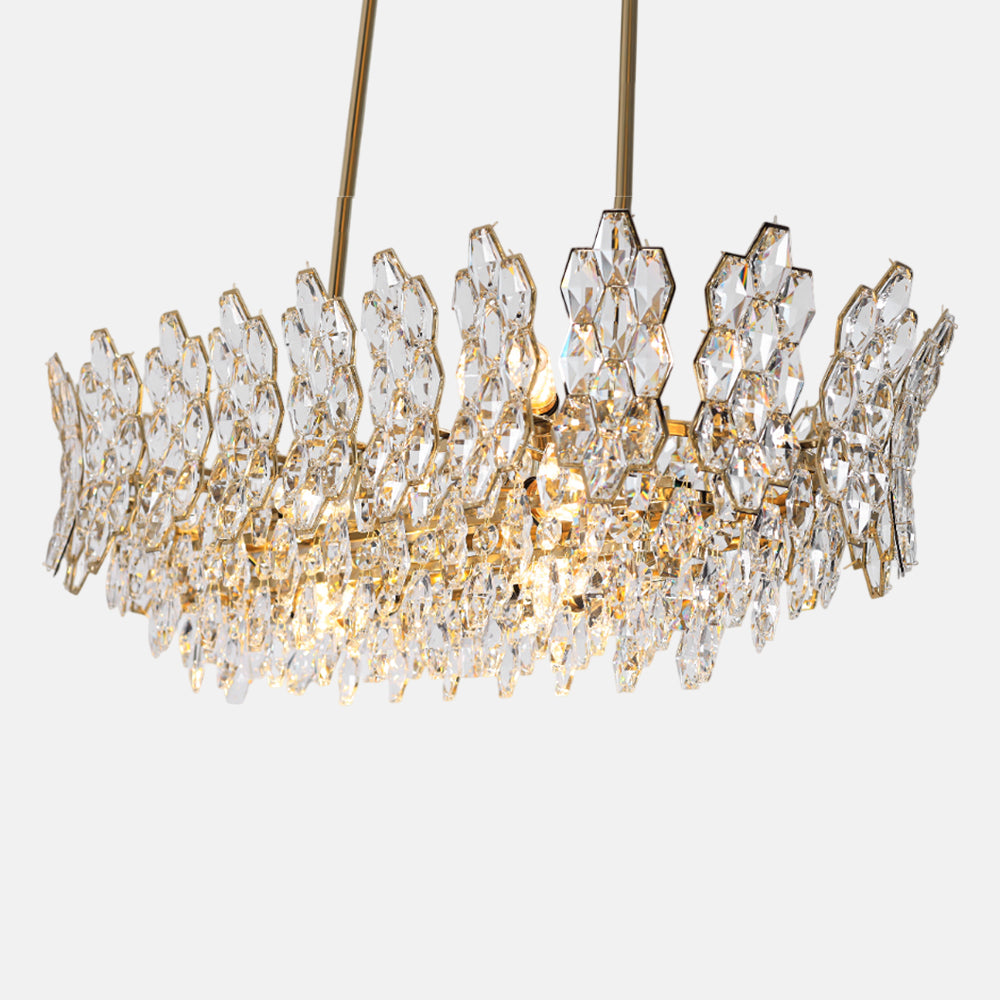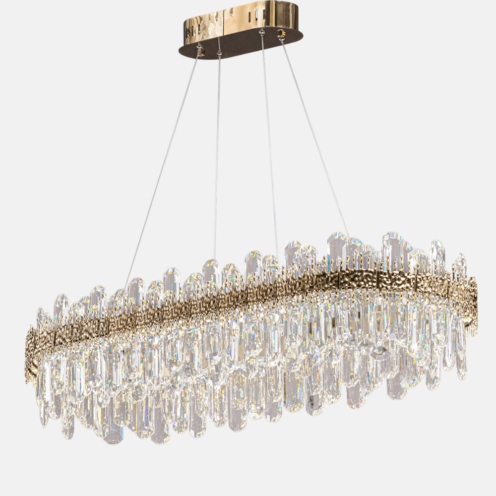 Chandelier 100 cm x 40 cm (LED) oval (plain section) code 5734 with solitaire gold crystal