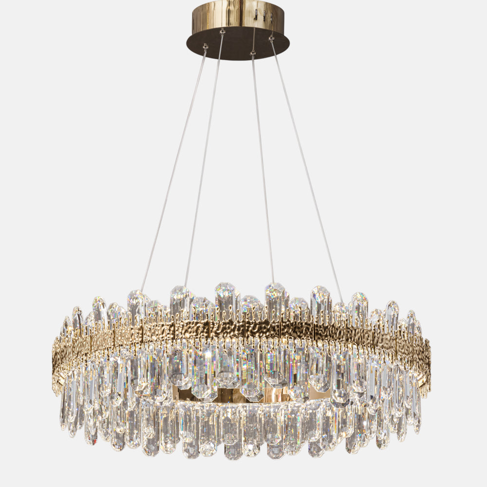 Chandelier 80 cm (LED) round (2 floors) square crystal code 5730 with solitaire gold crystal