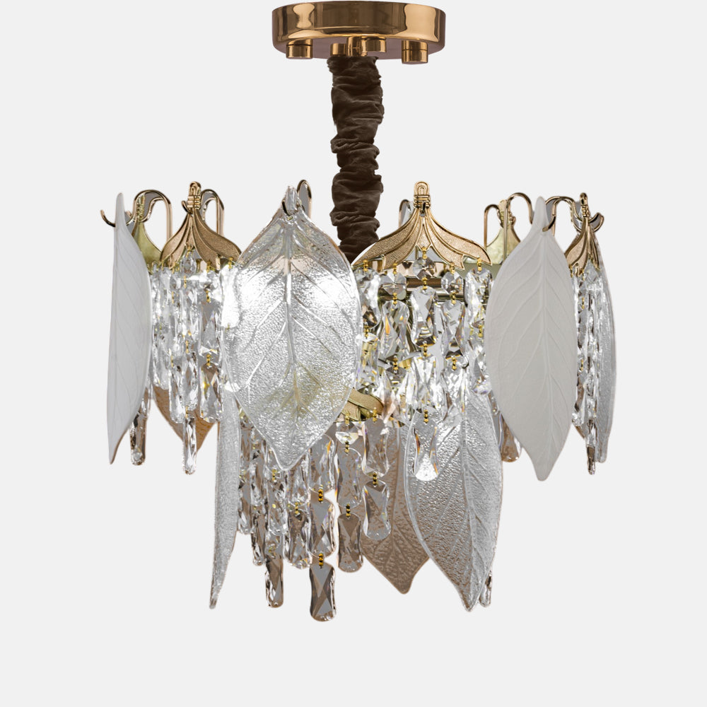 Glass Palm Leaves Round Chandelier, 14 Lights, Metal, 70×80cm - Solitaire Gold
