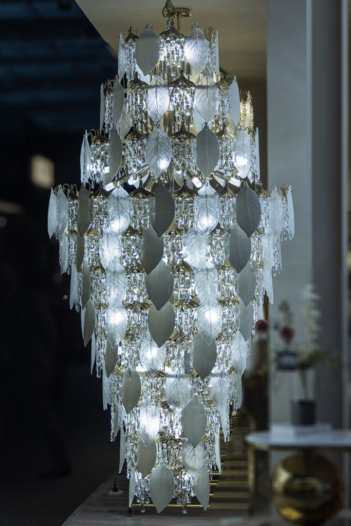 Chandelier 120 cm round ceramic leaf crown 12 layers 5692 solitaire gold