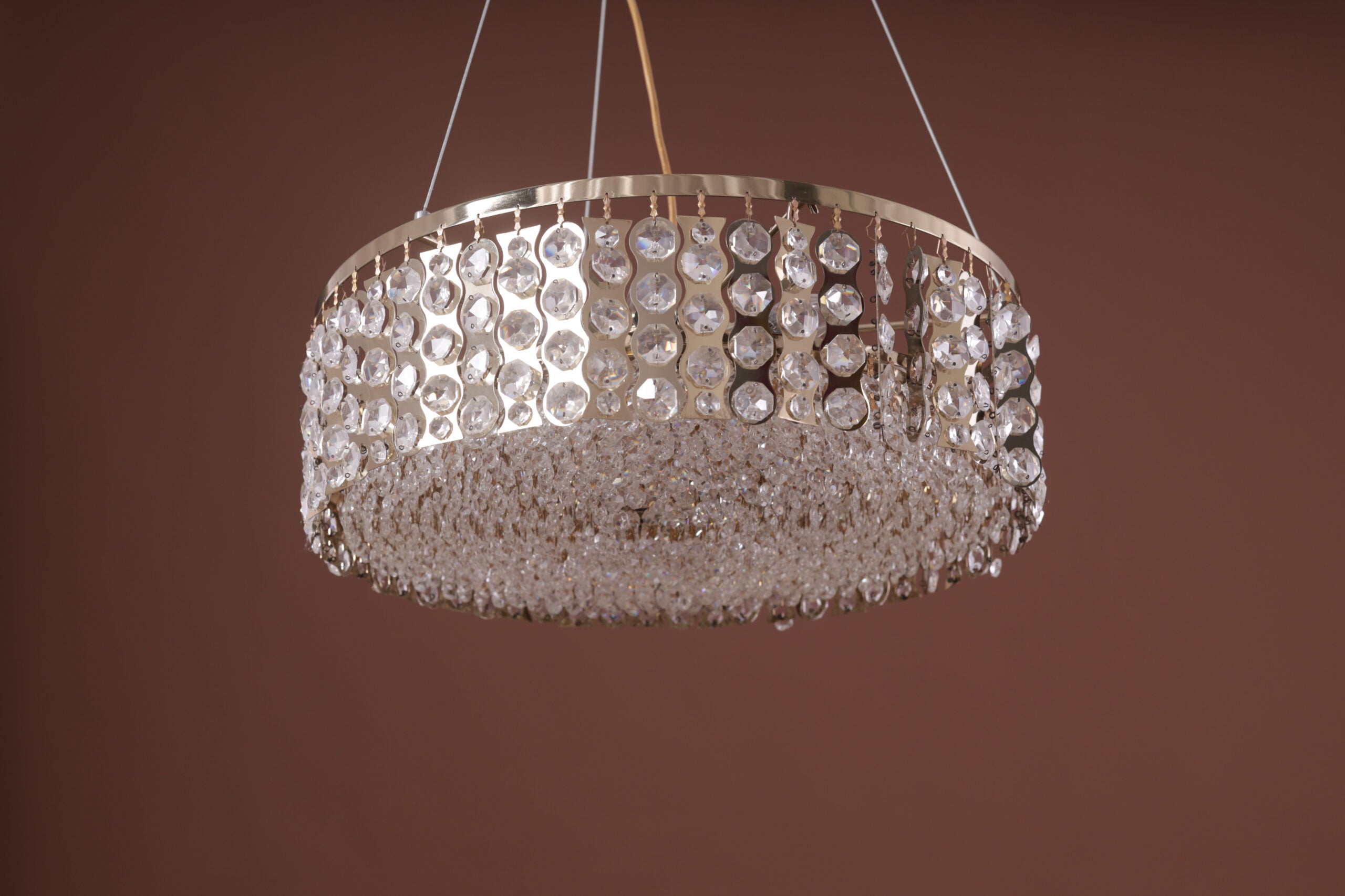 Chandelier 55 cm round stainless top code 5488 solitaire gold x black nickel with crystal