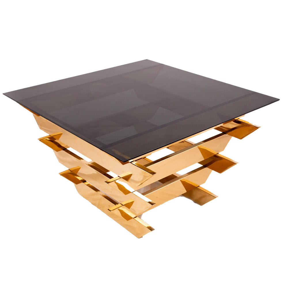 Square crystal table 80 cm height 45 cm code 5645 gold PVD stainless