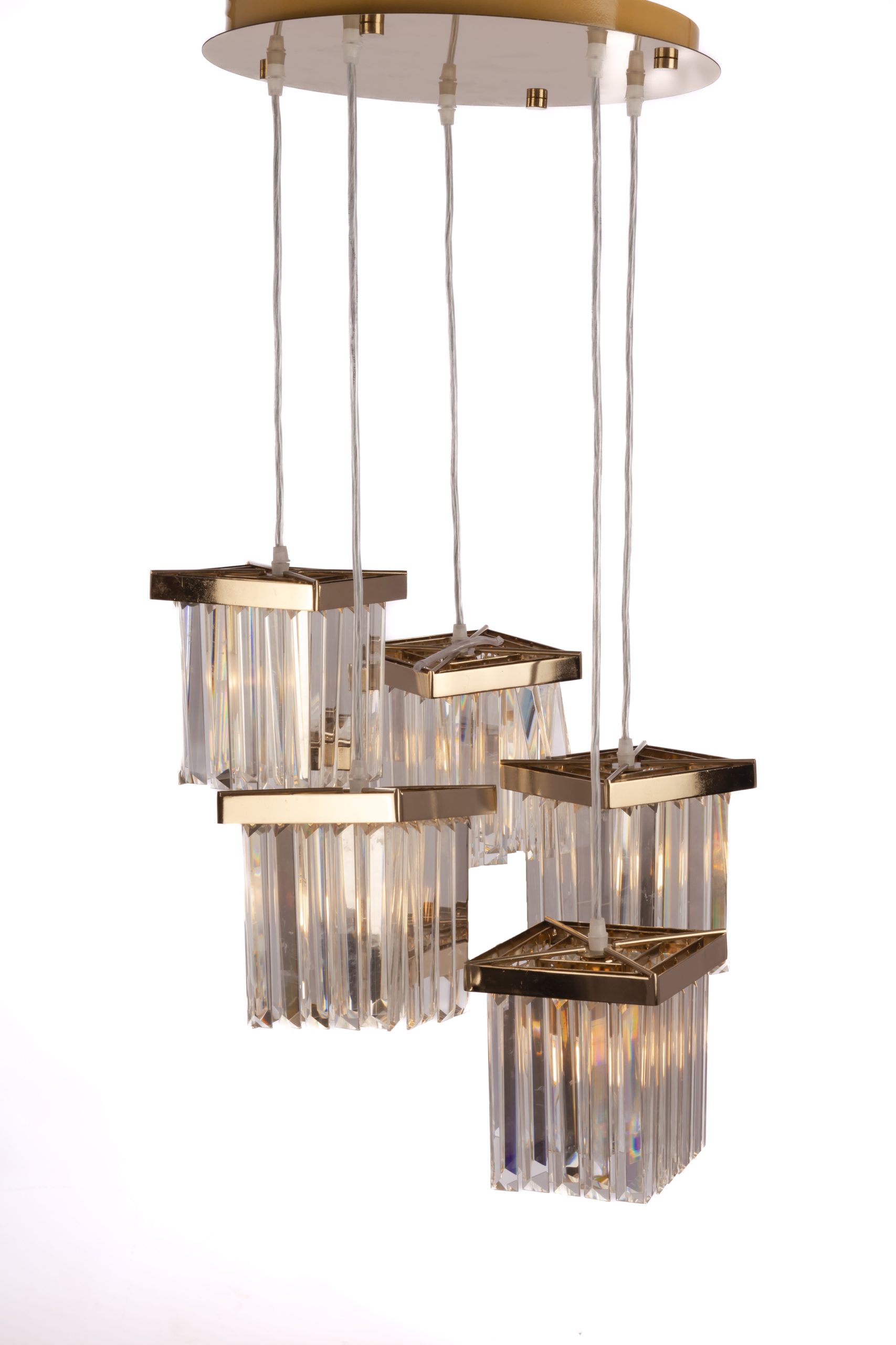 50cm Round Pendant 5 Crystal Curtain Ring 5462 with Solitaire Gold Crystal