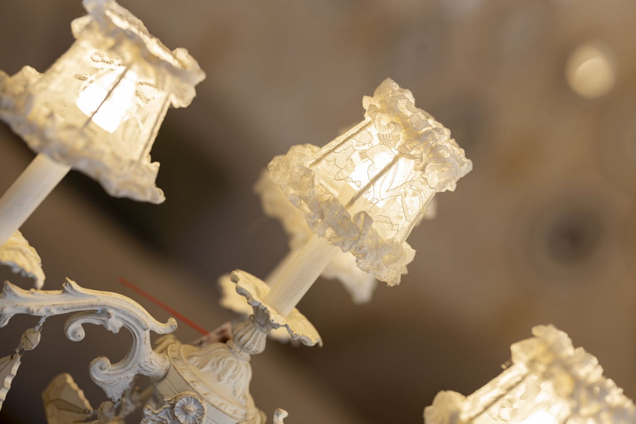 Candlestick, 3 arms, 4 bulbs, rooster crest, white area
