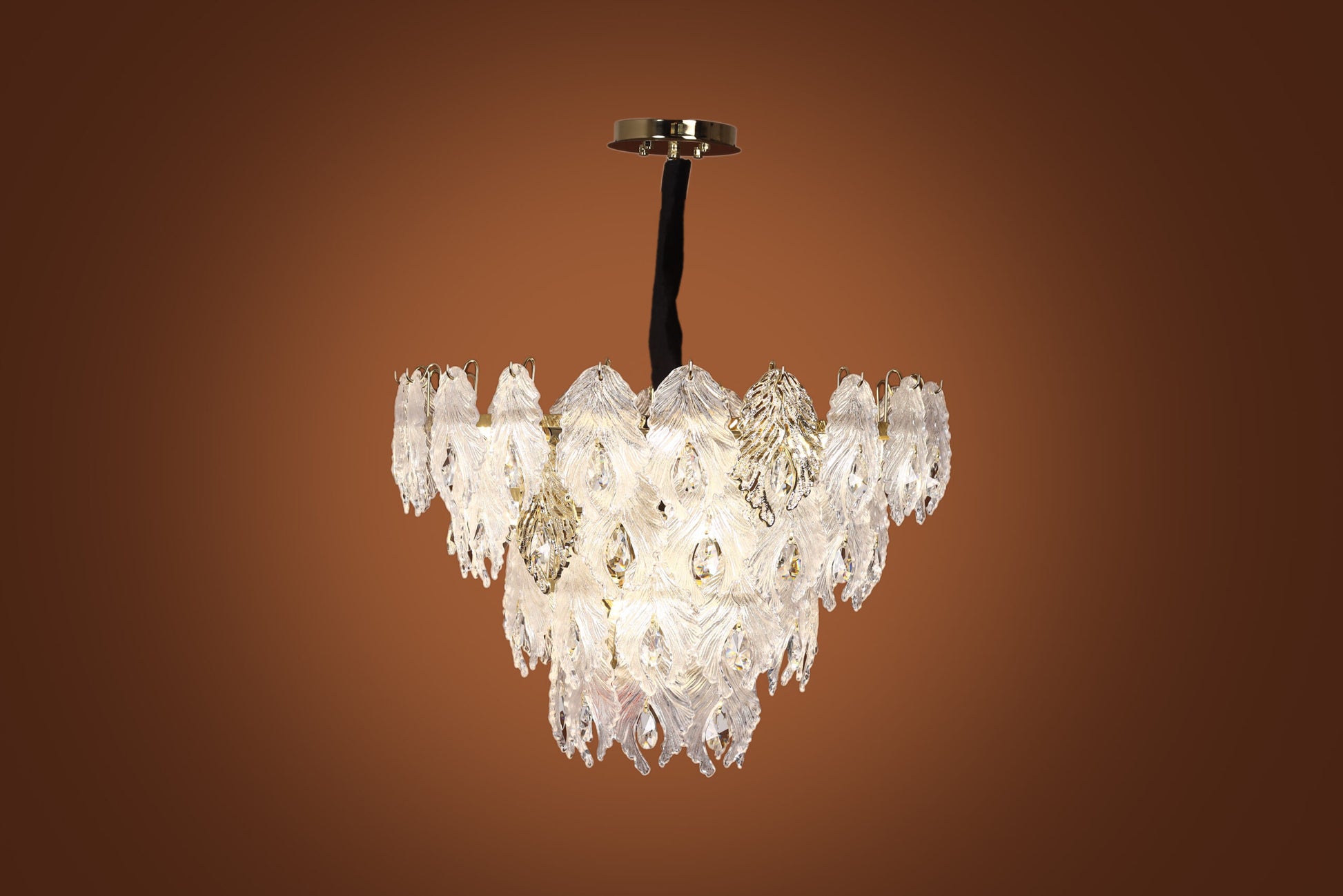 Glass Palm Leaves Round Chandelier, 14 Lights, Metal, 70×80cm - Solitaire Gold