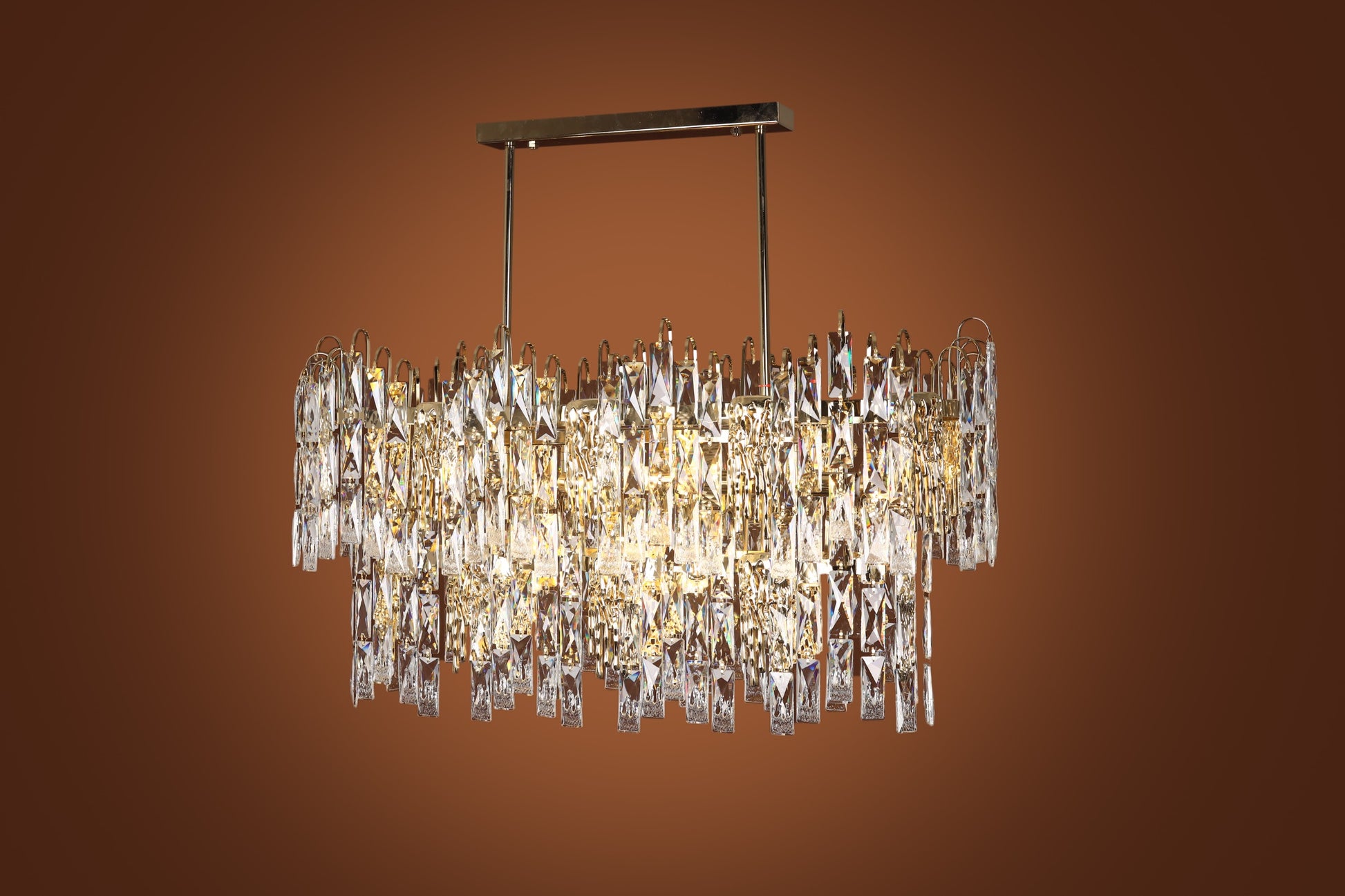 Chandelier 90 cm x 35 cm oval fountain metal palm flame code 5741 with solitaire gold crystal
