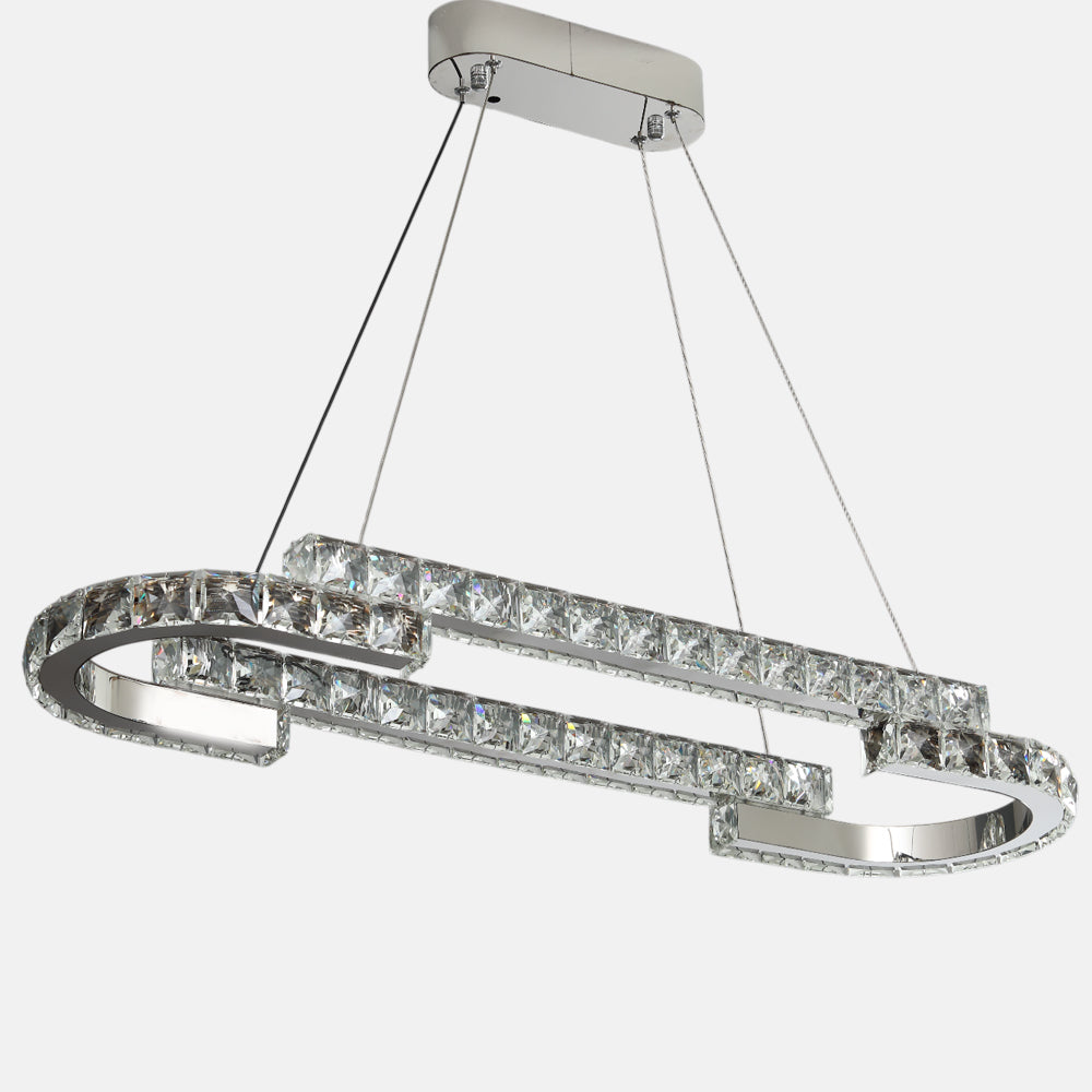 Pedro LED Oval Chandelier, Metal, 90×26cm - Chrome