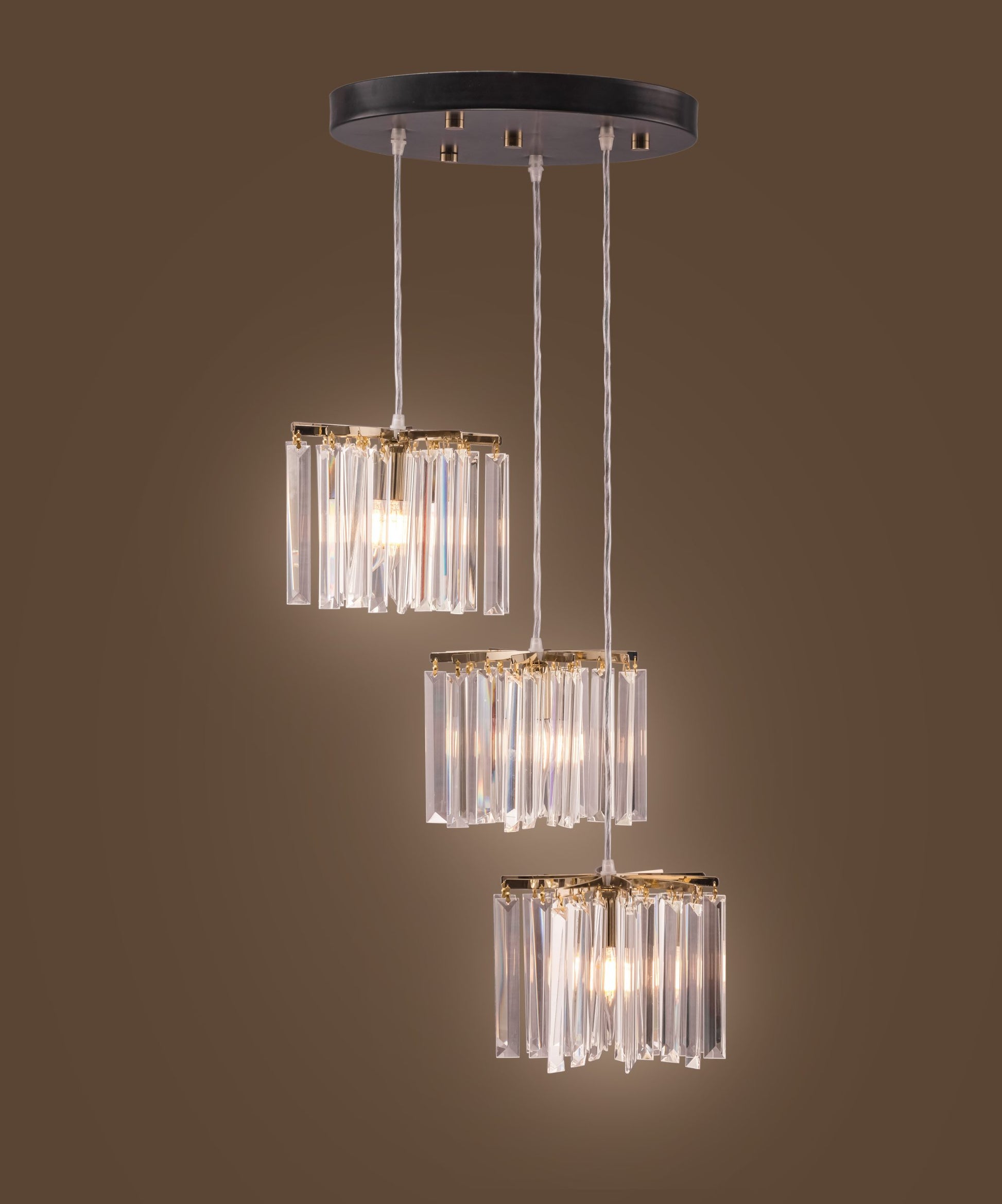 A modern-style triple pendant equipped with the finest crystals.